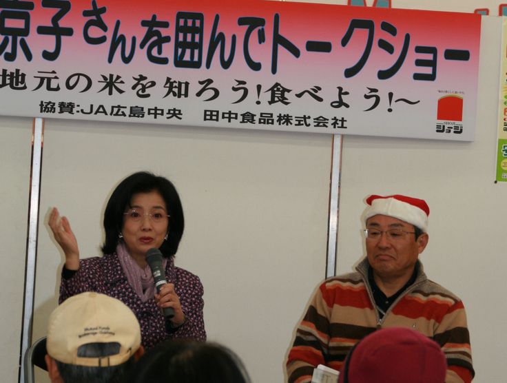 12月5日(土)西条ショージ375バイパス店で、女優吉沢京子さんを囲んで、ファーム・ウチで獲れたお米「安芸浪漫」のPRトークショーを行いました。