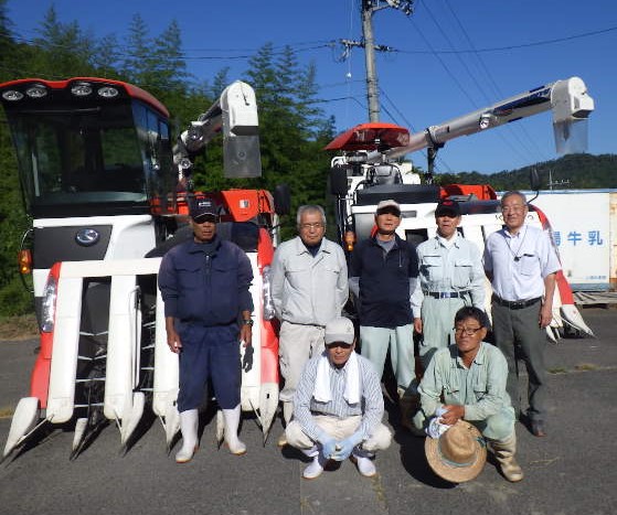 今日からヒメノモチに続き、大型コンバインを使ってコシヒカリの収穫が始まりました。
