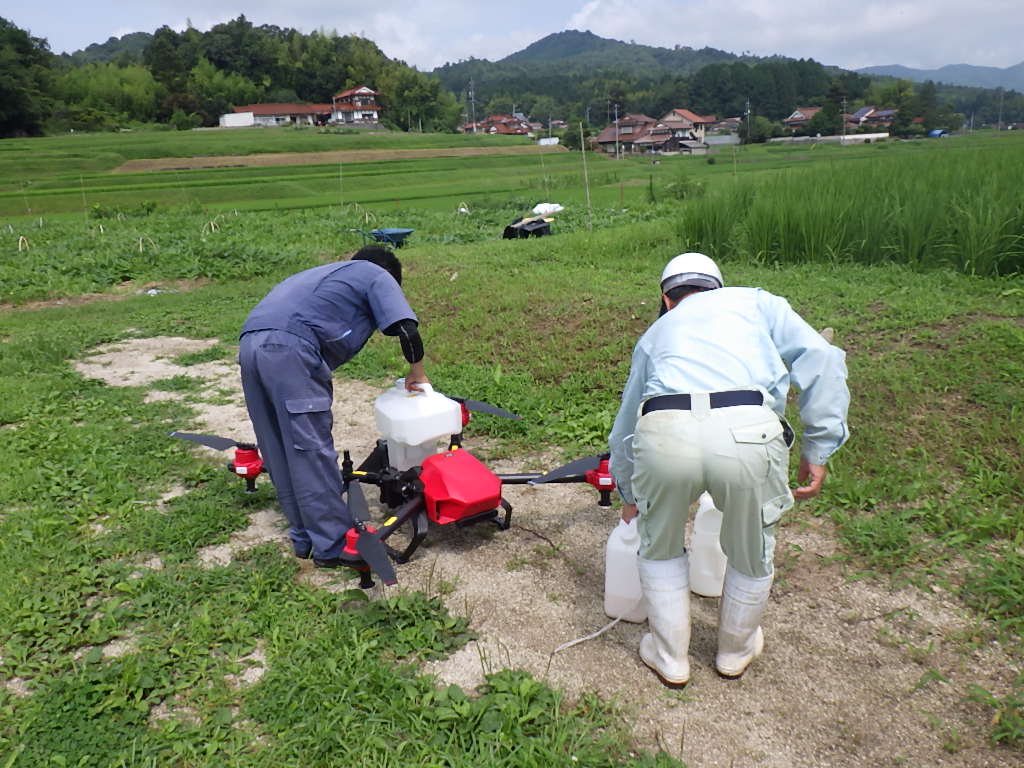 ドローンは快調に運行し,9反の田圃を1時間程度で散布を終えました。