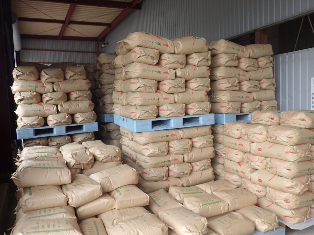 今年の夏は出穂後の高温が続き,昨年より1週間早く稲刈りを行い,モチとコシの配送や受け渡しの準備が出来ています。注文された組合員や支援者の方はお越しください。なお,昨年注文を受けてもお断りするケースがありましたので,できるだけ早めに注文ください。