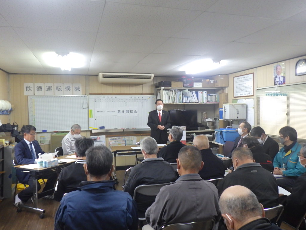 2月18日に第9回総会をおこないました。今年もコロナ禍ということで役員16名が参加,加えて来賓4名ご臨席の下で行うことができました。全組合員の方々にも事前の資料配布をおこない,全ての議案について全員一致の承認をいただきました。